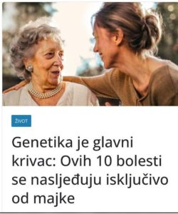 - Mnogi od nas nisu ni svjesni da genetika igra ključnu ulogu u našem zdravlju, te kako specifične bolesti, zbog nasljednih čimbenika, mogu biti prenesene s majke na dijete. Ovaj tekst istražuje deset bolesti koje se nasljeđuju isključivo putem majčine linije, uz pregled preventivnih mjera koje mogu pomoći u smanjenju rizika od njihovog razvoja.