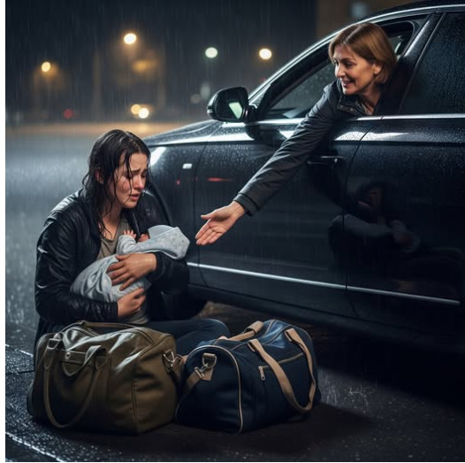 U kišnoj noći, kada je svijet bio prekriven slojem tjeskobe i usamljenosti, mlada žena se našla na suhom trotuaru, čvrsto držeći svoje novorođenče. Njen život, sveden na nekoliko torbi s osnovnim potrepštinama, predstavljao je simbol njenog boravka između nade i očaja. U tom trenutku, osjećala se izgubljeno, kao da su svi putevi koje je nekada poznavala naglo prekinuti. Kišne kapi su udarale o asfalt, a svaka od njih činila se kao suza koja je padala s njenog lica, dok su joj misli lutale ka onome što je nekada imala — dom, ljubav i sigurnost.